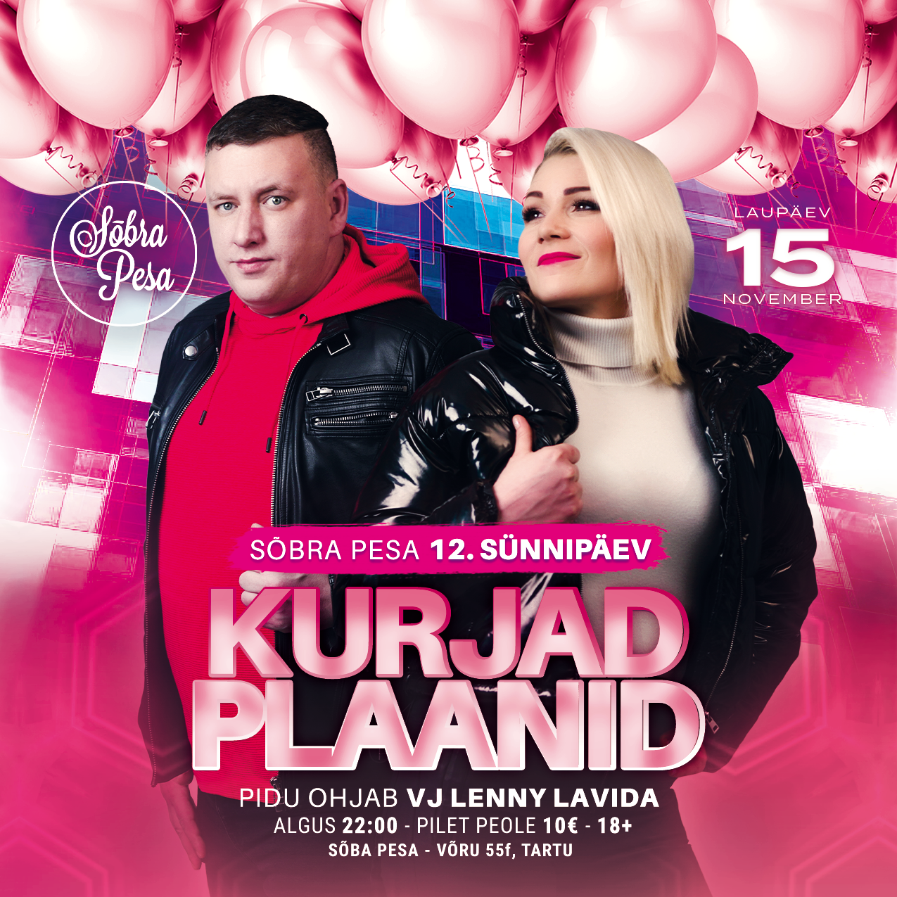 Pilet: 10 €, peale kella 02:00 pilet 5€